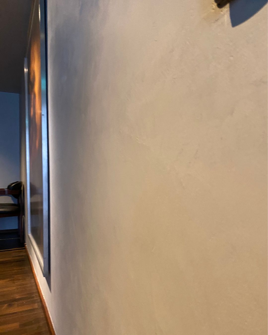 The light grey, smooth Microcement, finish provides the perfect backdrop for a modern eaterie, giving a clean, minimalist aesthetic.