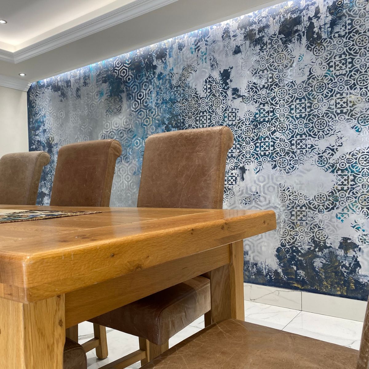 This dark, moody and dramatic take on a feature wall was inspired by the clients wanting to create something a little different in their W/C. We used Venetian plaster with a vertical dragged texture in a dark grey and blackened colour blend to design this atmospheric piece, which really comes to life with the furniture … Read more